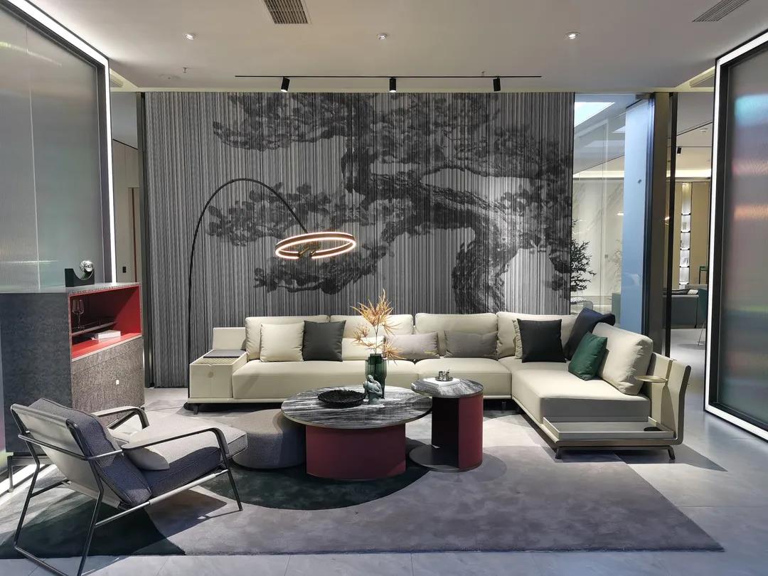 在展厅现场,各系列展厅极具潮流感的空间布局和场景设计,完美呈现了当下流行的空间组合和软装搭配思维;极具时尚品位的产品设计和色彩运用,赋予产品个性鲜明、多元混搭的时尚气质,彰显了圣蒂斯堡“整装定制·全案设计”产品整合优势和特色。